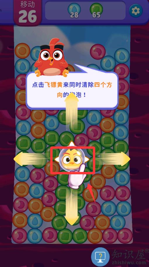 3、点击飞镖黄来同时清除4个方向的泡泡。