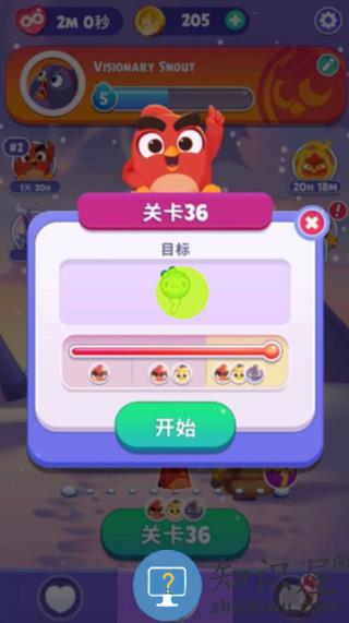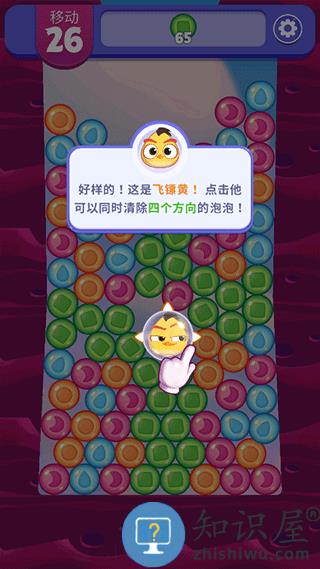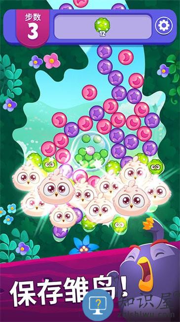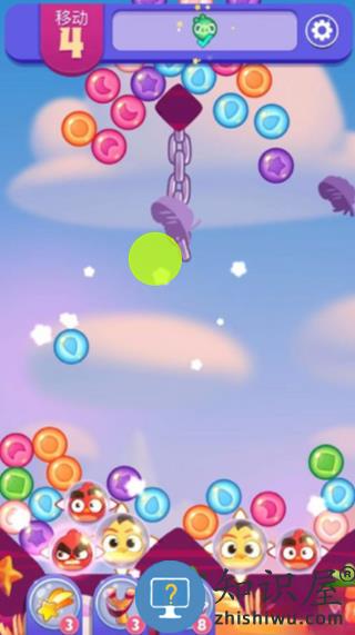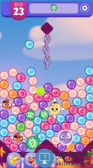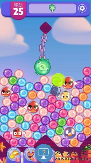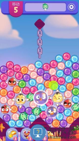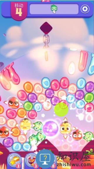 2、上方有数量颜色的泡泡是玩家需要完成的任务,并且在下方的小鸟为强力的道具