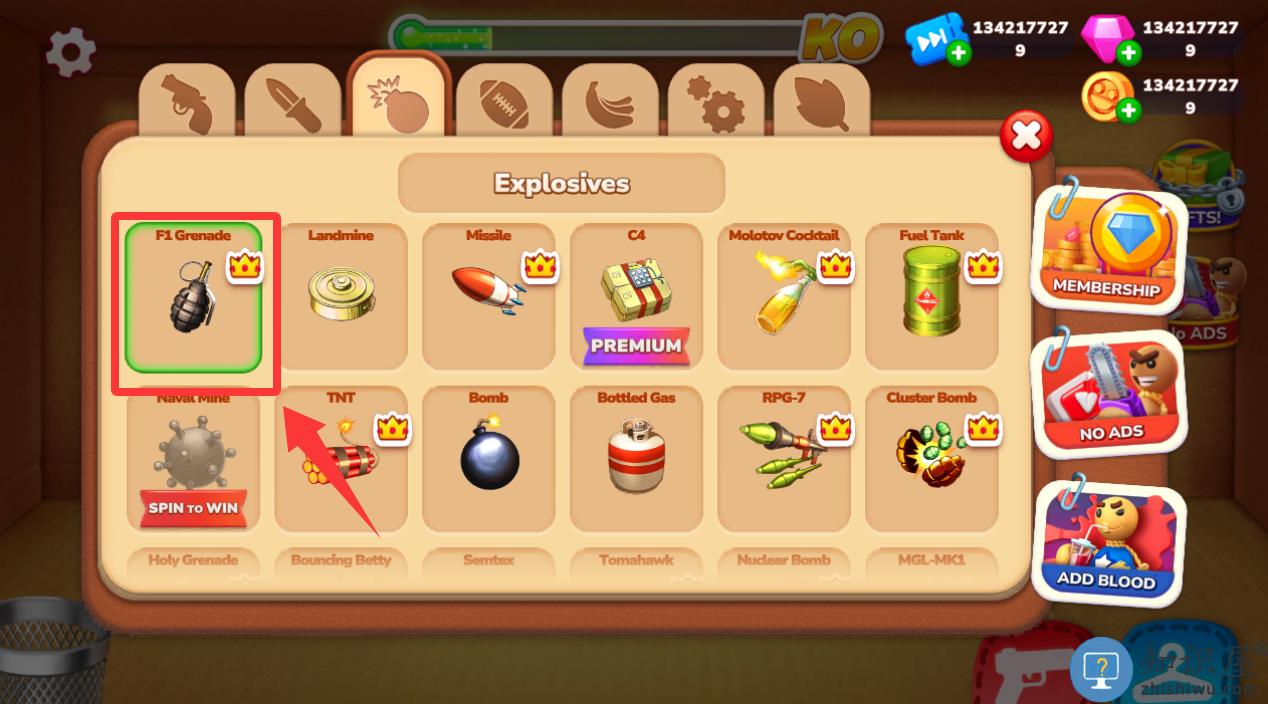 2、进入游戏点击右下角里的手枪选择道具把它搞死。