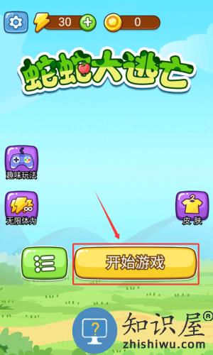 1、点击开始游戏按钮,进入蛇蛇大逃亡游戏。