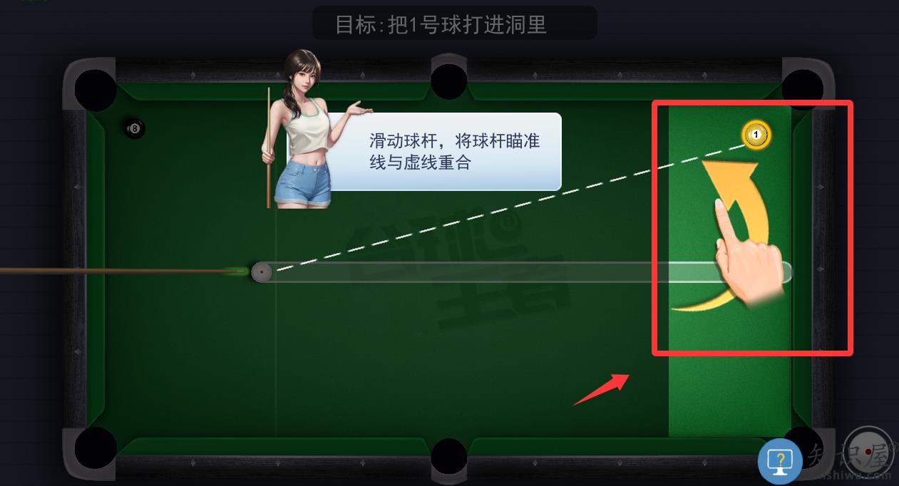 2、点击滑动球杆,将球杆瞄准线与虚线重合。
