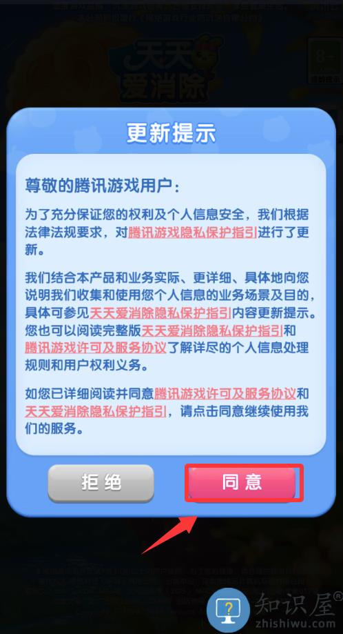 2、点击腾讯游戏用户协议和隐私政策里的同意。