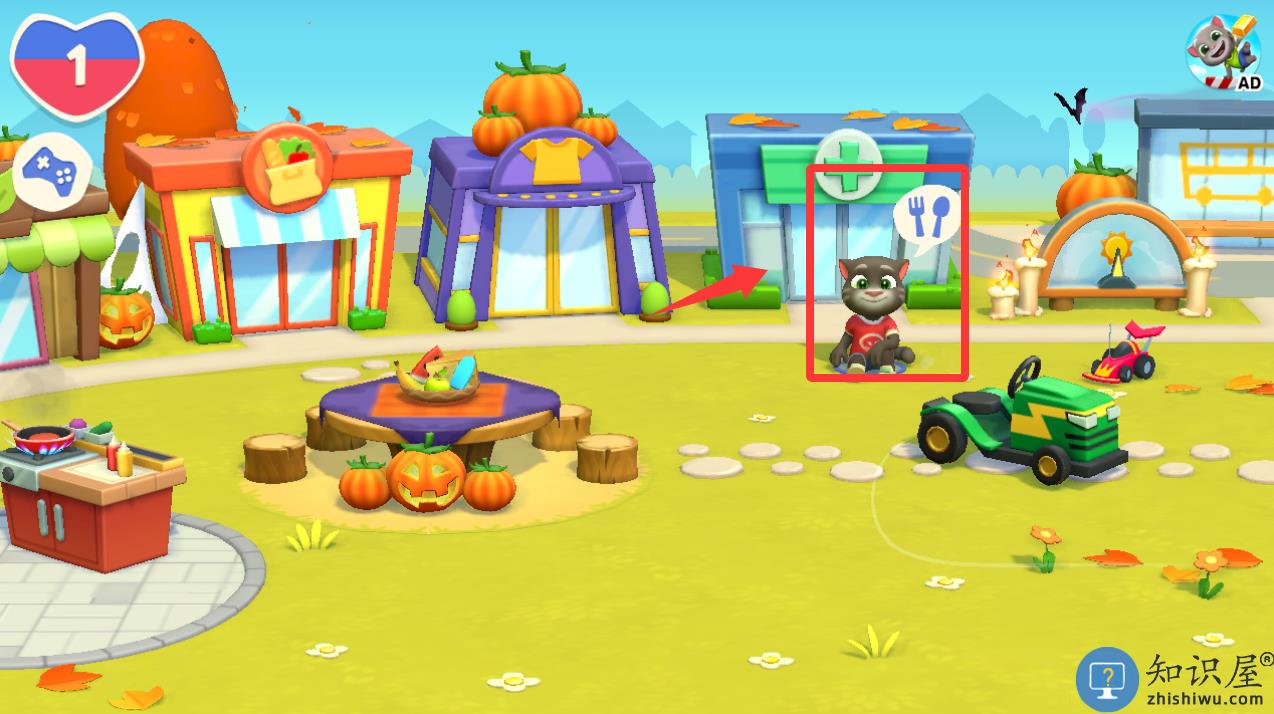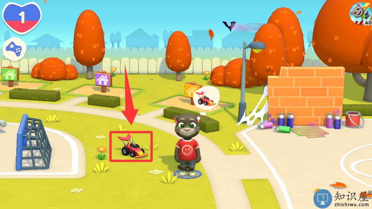 2、汤姆想玩遥控车,点击红色框框里的遥控车给它玩。