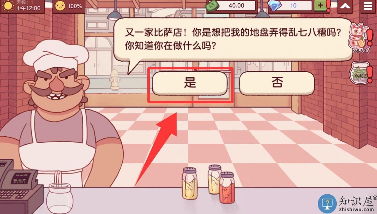 12、遇到这个如果你解锁了蘑菇,橄榄,洋葱,青椒就点“是”,如果配料不全就点“否”。后面还会来给你50块钱。酱料+芝士+蘑菇+橄榄+洋葱+青椒,另外顺便说一下纯素食披萨是酱料+蘑菇+橄榄+洋葱+青椒。就是比素食披萨少了芝士。