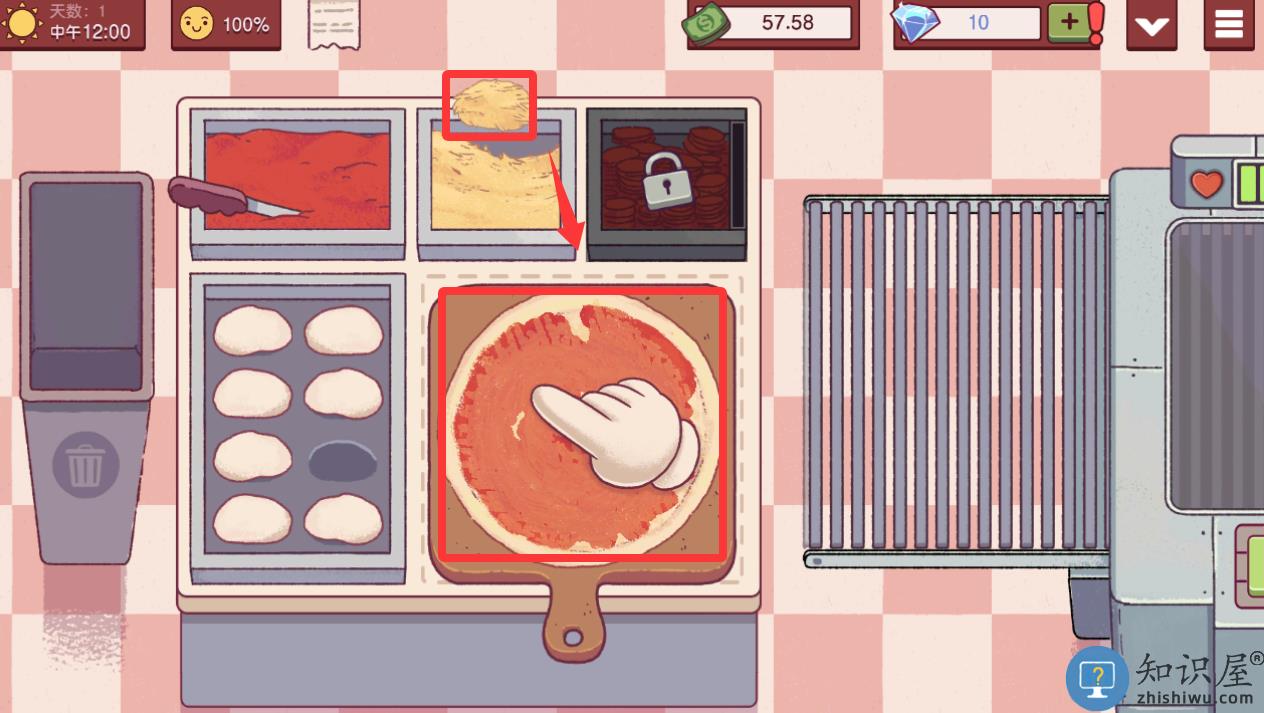 3、点击长按芝士把披萨里涂抹均匀就可以了。