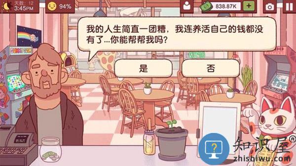 6、这个乞丐前期要披萨,点“是”,随便做一个就好,后面还会来借一百块钱,借给他他会还你更多,具体多少我忘了,反正比一百多。后面又来借一百五,我不知道该不该借,我手太欠了,没看清就点了否,等我这次玩到哪里时点“是”看看。