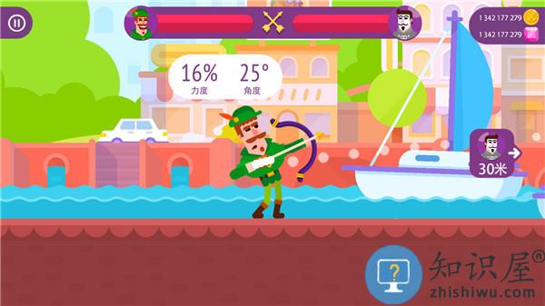1、拉弓瞄准目标,控制角度和力度完成射击。