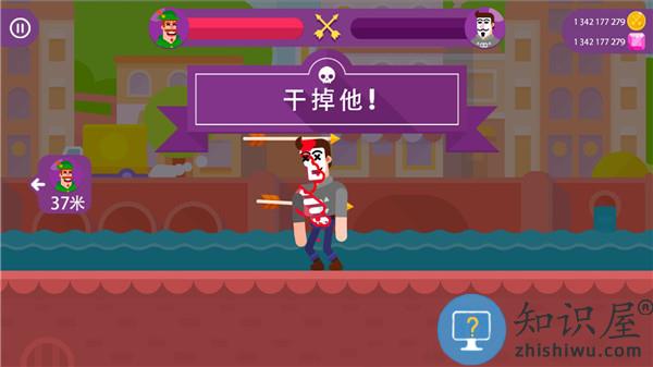 游戏中挑战过程非常有趣,玩家们与对手会进行回合对战,由于不知道对手的站位,所以一般第一次都不能攻击到的,需要玩家们通过多次尝试来挑战力度和角度,对于高手玩家来说,或许第二次就能攻击到了,而对于新手而言需要尝试很多次才能找到感觉。游戏的挑战过程可以说是惊险刺激,特别是在画面上的表现更加夸张,人物被武器射到之后会有各种穿插效果,甚至会看到肌肉、骨骼、内脏等,而且还会有血液喷溅效果,十分的血腥,所以对于小玩家们来说并不太合适。