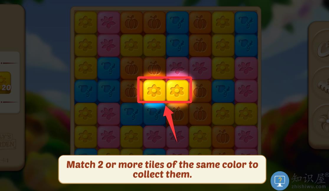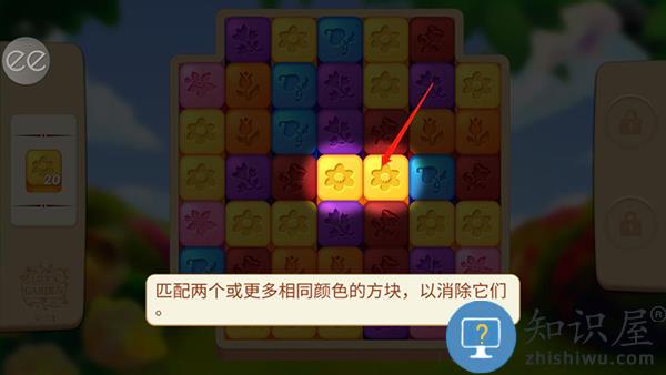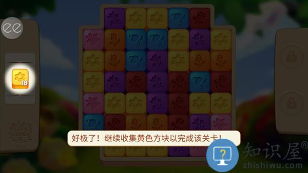 1、根据旁边的关卡要求,匹配两个或更多相同颜色的方块,然后点击就可以消除它们;