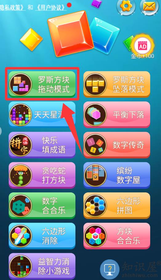 2、点击游戏界面里的罗斯方块拖到模式。