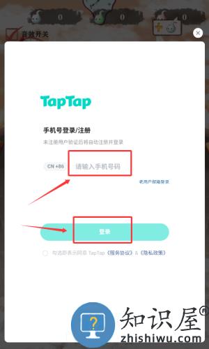 3、在登录页面输入手机号后,点击红色箭头指向的绿色登录按钮完成注册。