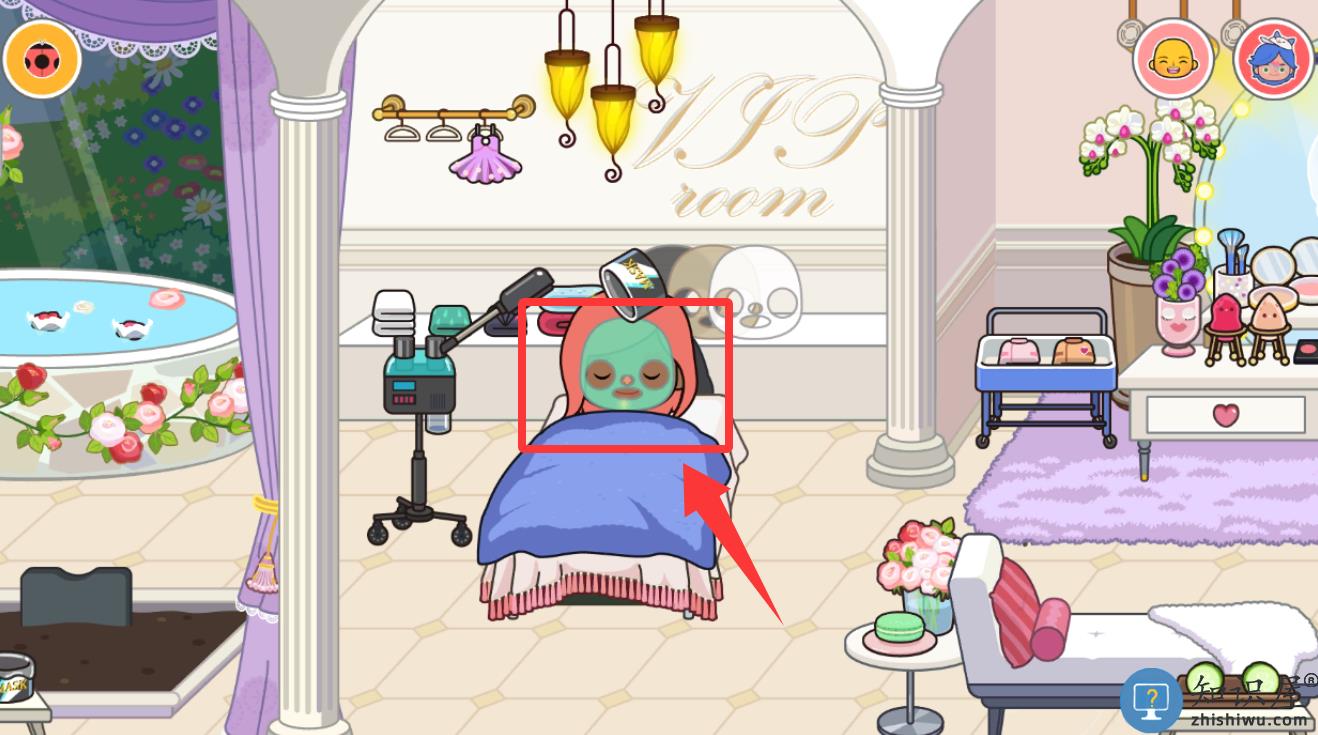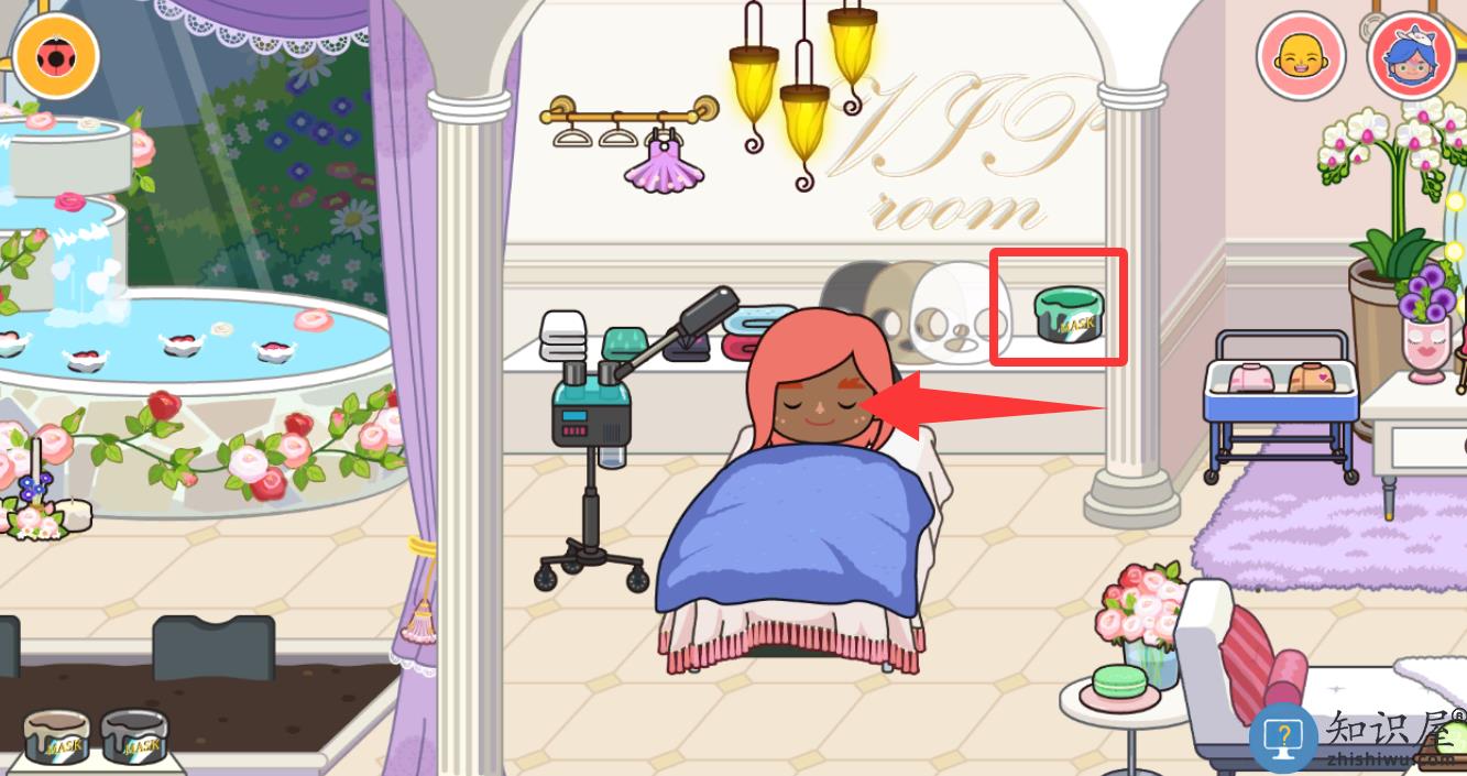 2、然后点击红色框框里的面膜液在它脸上。