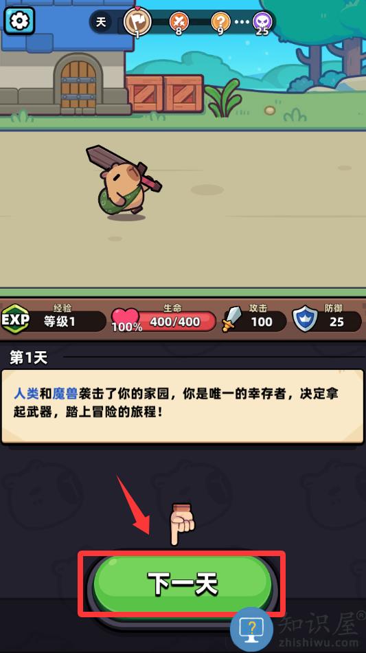 游戏的战斗场景,则是一个类似于自走棋的回合制形式,随机的出招类型和随机的伤害,当然伤害的主要范围还是根据人物的攻击力和防御力来判定,角色的属性又来源于多个方面。首先就是人物等级,通过冒险历程获得经验提升等级后,卡皮巴拉的属性也会有相应的提升。