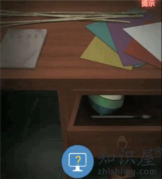 24、接着我们来到得到毛笔的桌上点击最下面的盒子,将两个小饰品一起放入进去,得到一把没有齿的钥匙。
