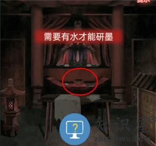 5、进入城隍庙,点击桌子,会发现我们现在缺少水,我们先来到外面,点击外面的桌子。