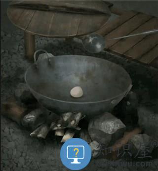 10、使用空的香炉收集水,点击锅,放入面粉还有水,点击锅上面的勺子进行搅拌,最后得到浆糊。
