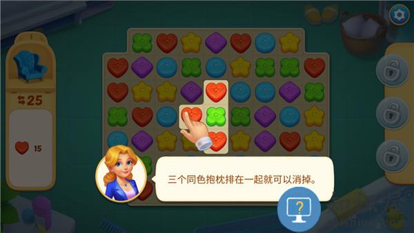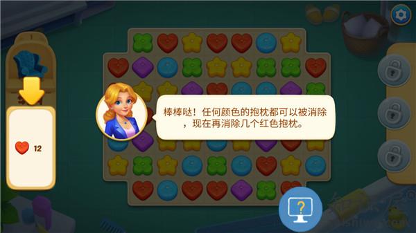 在左边可查看关卡需要消除的目标,当然任何颜色的抱枕都可以被消除。