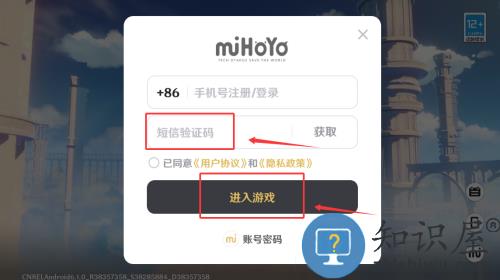 3、填写验证码后点击红框进入游戏按钮完成登录。