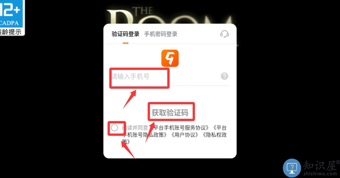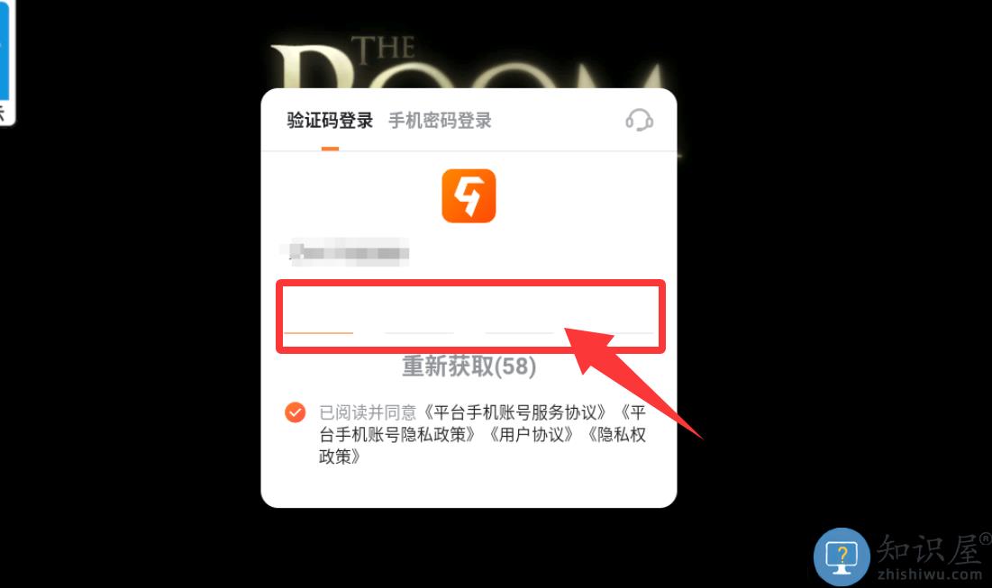 2、先在红色框框里打√并输入手机号码获取验证码。