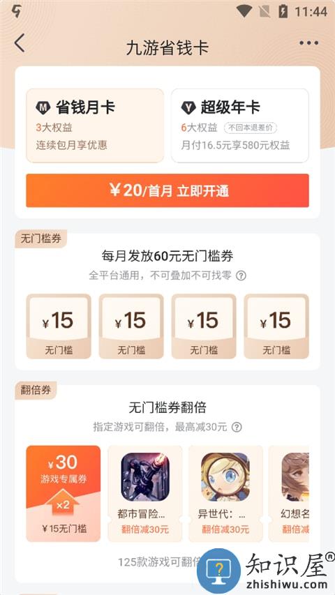 2、点击开通省钱月卡或年卡,玩家就会得到指定游戏的翻倍游戏专属券;