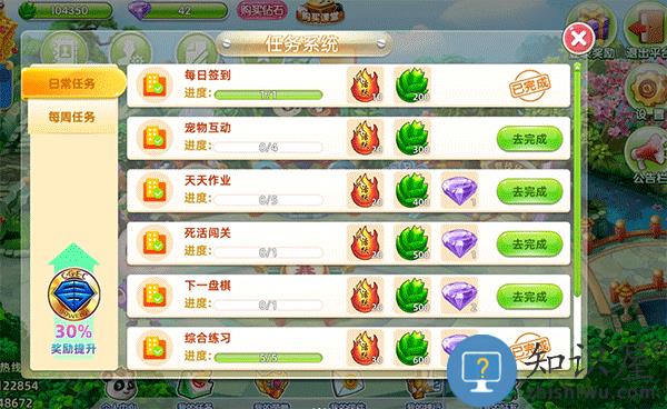 “宠物互动”(完成前面任务领取任务奖励后,可以去宠物馆喂养小熊猫,小熊猫随着活跃度和喂养竹笋币的提升不断成长升级,具体可于右上角宠物图鉴查看,喂养时注意等小熊猫念完围棋谚语后才能点击第二次,完成宠物互动任务共需要点击4次)