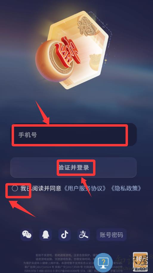 2、点击红色框框里打√然后输入手机号码验证并登录。