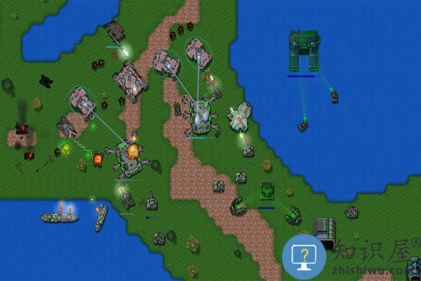 14.激光坦克:费用1300$。不再是火炮和导弹攻击,而是电击,激光防御塔防不住。威力巨大但冷却时间长,不建议只用这种单位进攻。单体作战能力强大,配合替他单位也是具有很强的战斗力,炮塔依然是最大的威胁。