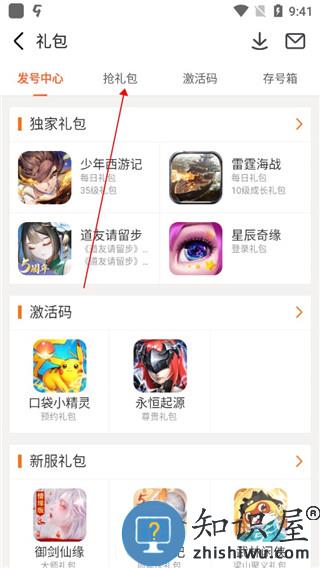 4、在抢礼包界面中找到自己所玩的游戏并点击进入领取。
