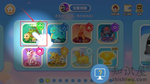 3、选择红框标注的绿色小乌龟图标,开始创意拼图挑战。