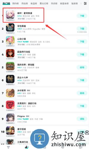 2、在热门榜中选择红框标注的崩坏星穹铁道。