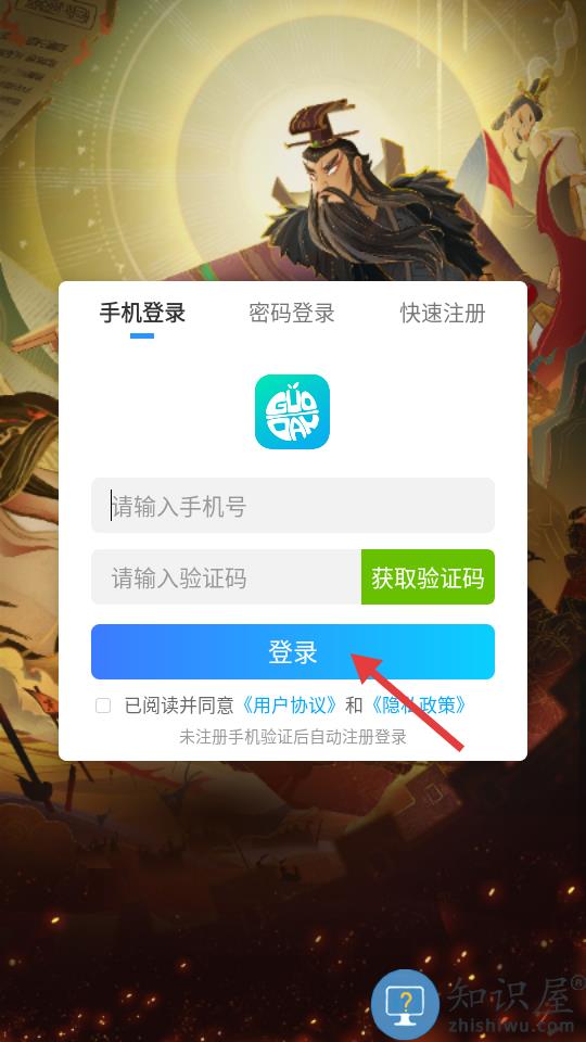 1、打开游戏输入手机号登陆。
