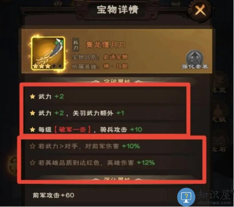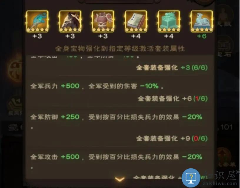 另外建议大家均衡强化,而不是只针对某件宝物一直强化。套装宝物更是有套装加成,尽量把同一套宝物给一个武将穿戴。