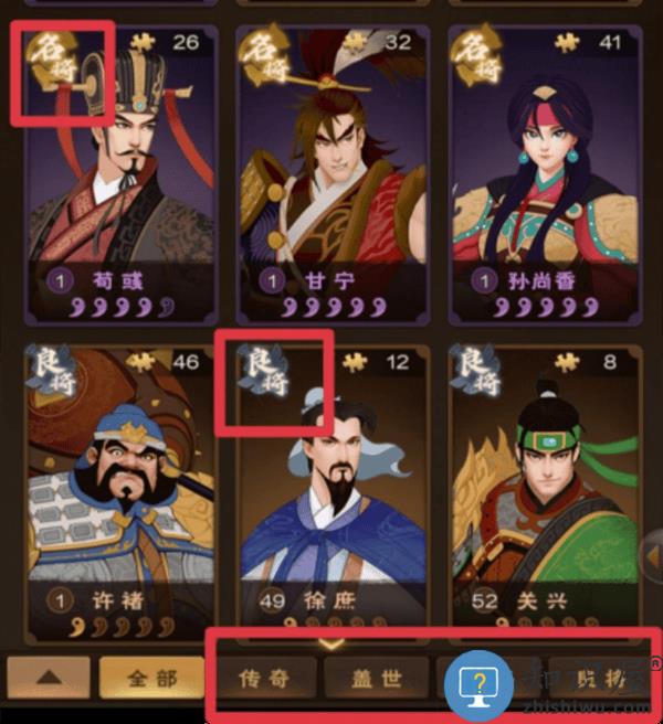 游戏里,武将品级分为四品,由低到高分别为:良将、名将、盖世、传奇。武将品级非常直观的显示在武将的左上角(如图所示)