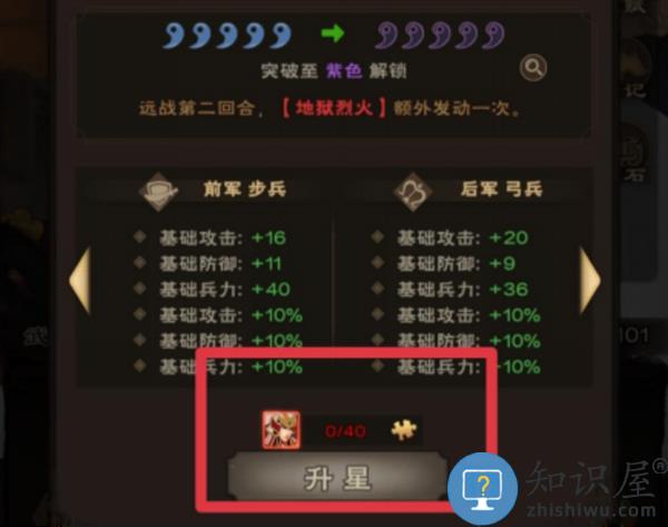 1、武将初始激活为蓝色品质,蓝色满星后需要40片碎片突破至紫色。