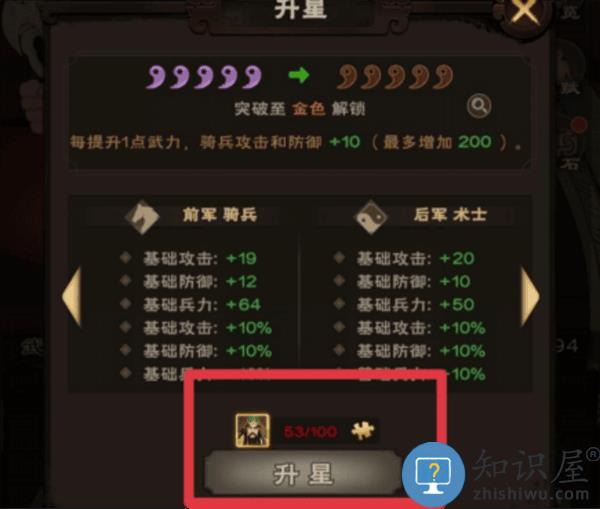 武力主要提升前军攻击以及少量提升后军攻击。