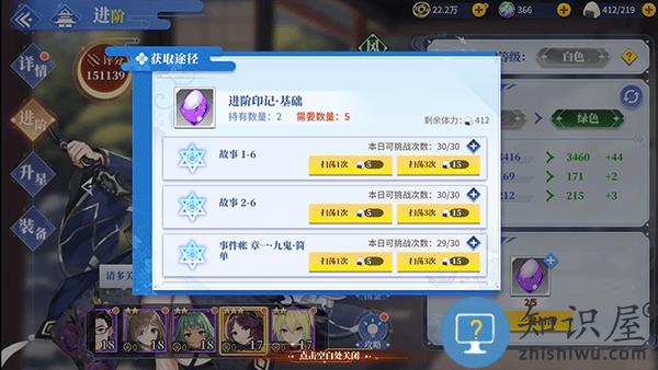 5、在进阶材料不足时,可通过点击材料并使用一件扫荡快速进行获取。