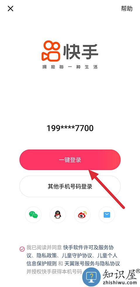 1、进入快手app之后,点击登录,如下图所示,支持手机号码登录;