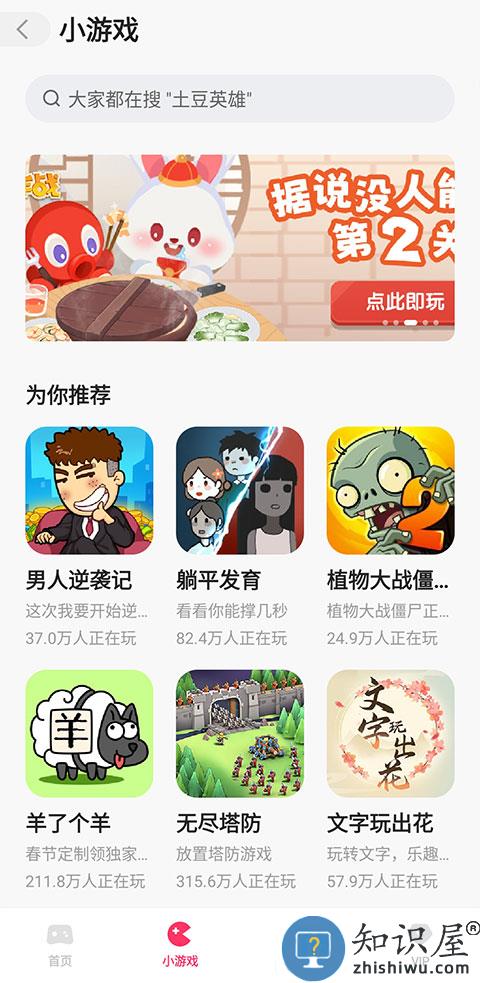 8、除了推荐的游戏,还可以在搜索栏输入关键字,来查找自己想玩的小游戏哦~