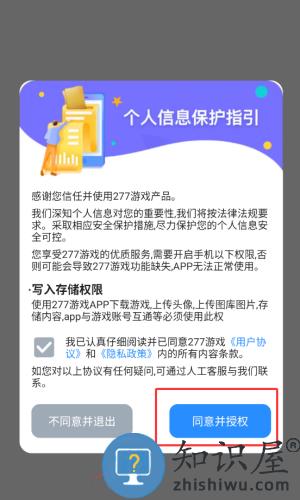 1、阅读隐私政策后,点击红框标注的同意并授权按钮。