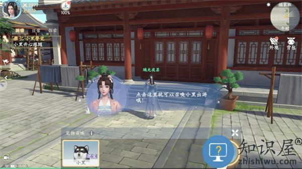 13、做完主线赏罚分明之后就可以解锁府邸了,玩家可以在府邸中种植、装饰、养宠物等;可以在宠物窝与自己的小黑互动、喂食、洗澡,还可以让它外出打工,来获取爪爪币