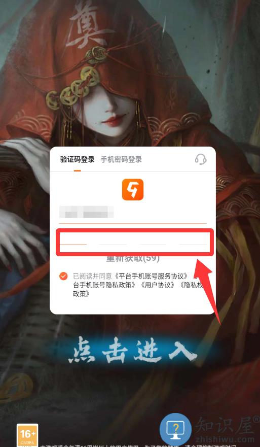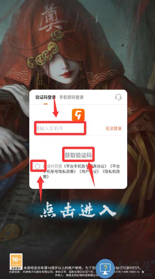 2、点击红色框框里打√然后输入手机号码获取验证码。