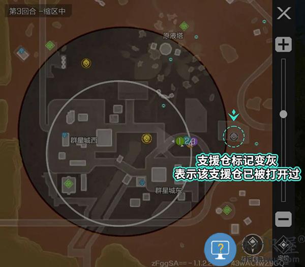 支援仓会在第二回合开始后域随机投放,在降落前画面会出现对应提示,同时在小地图上,也会出现黄色标记来显示具体掉落位置;如果支援仓的图标在小地图上变为灰色,则是提示全场所有玩家“该支援仓已被拾取过”;