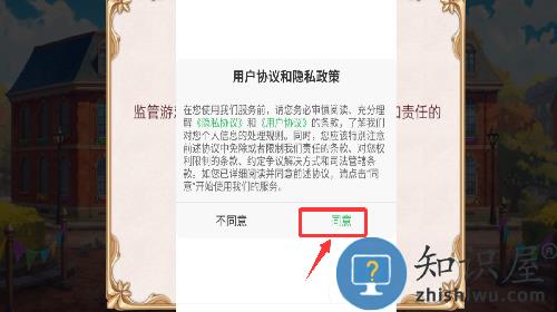 1、点击用户协议和隐私政策里的同意并继续。