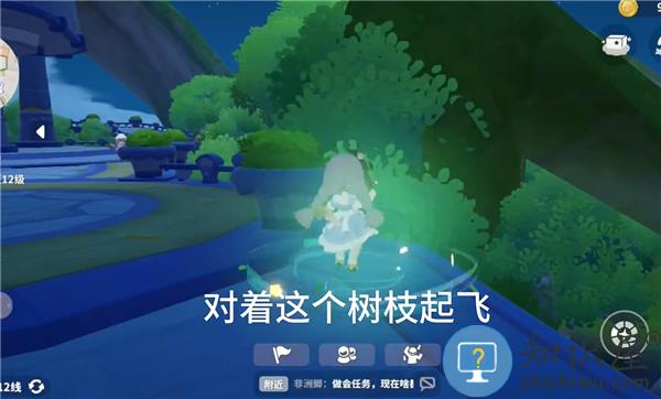 4、爬到塔上面,紧接着对着这边的树飞上去。