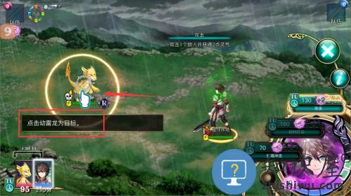 1、点击红框箭头指向的幼雷龙,选择它作为攻击目标。