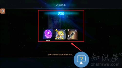3、点击红框标注的奖励图标,查看战斗获得的道具详情。