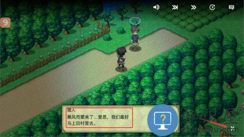 1、点击红框箭头指向的猎人角色,继续对话推进剧情。