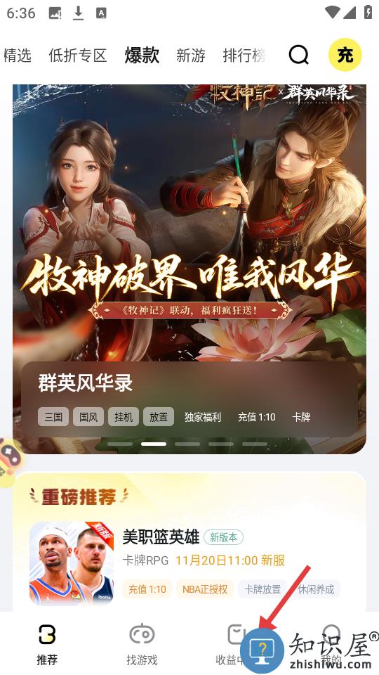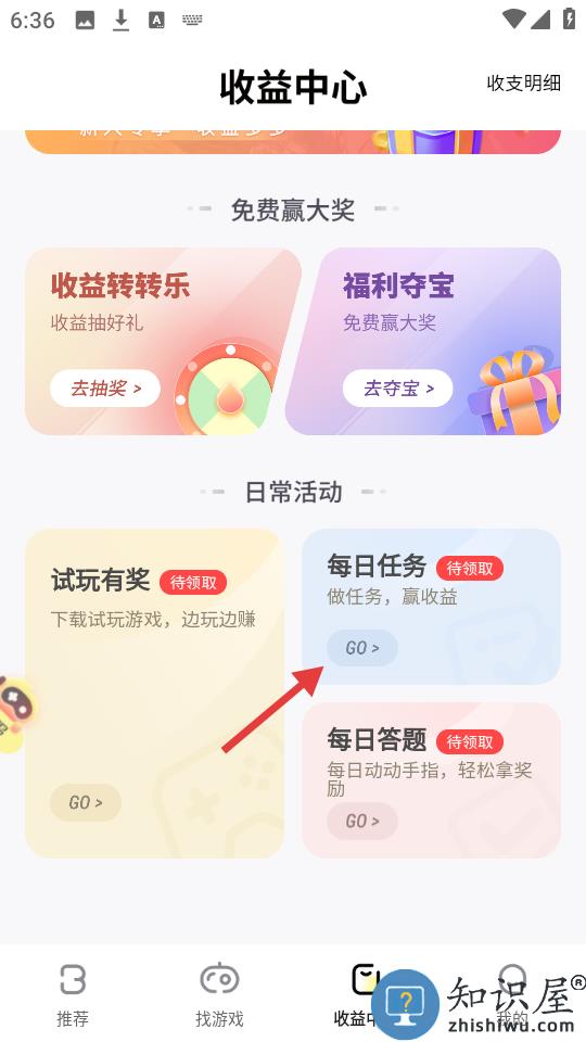 1、在主界面点击下方的收益中心。