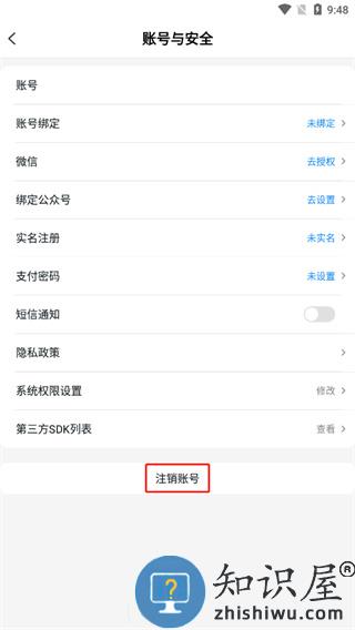 3、这时我们会看到下方有一个注销账号按钮,我们需要点击进入;