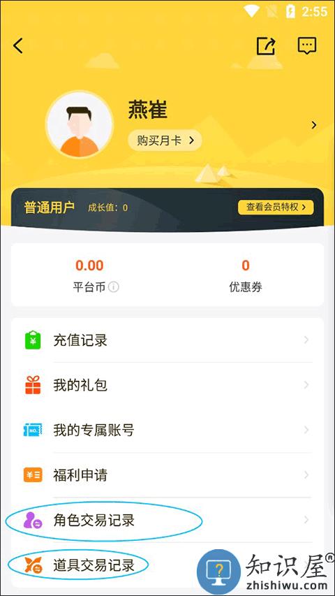 进入个人页面后我们找到角色交易记录和道具交易记录这2个选项点击就可以查看了